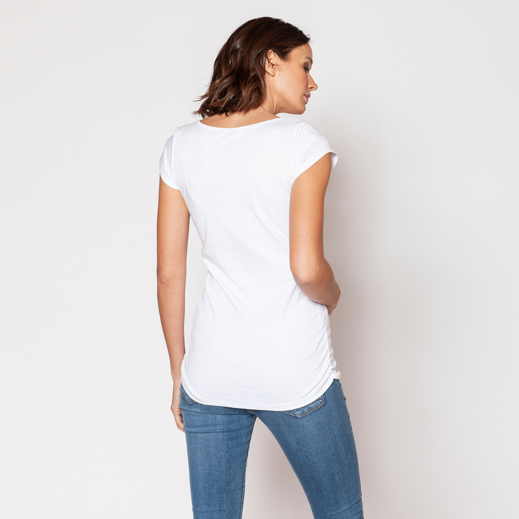 Polera maternal manga corta de algodón peruano en color blanco. Un básico que no puede faltar en tu closet de embarazo.