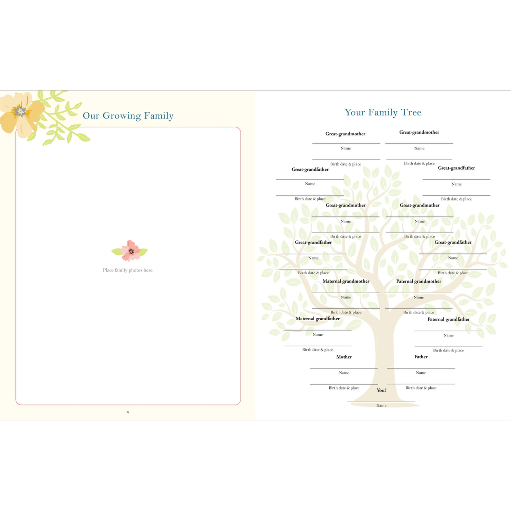 Incluye páginas guiadas para escribir, espacios amplios para fotos y secciones que acompañan desde la buena noticia del embarazo, el progreso mensual del primer año y páginas anuales desde el año uno al cinco. Es un recuerdo único para ver y revivir cada etapa con emoción.