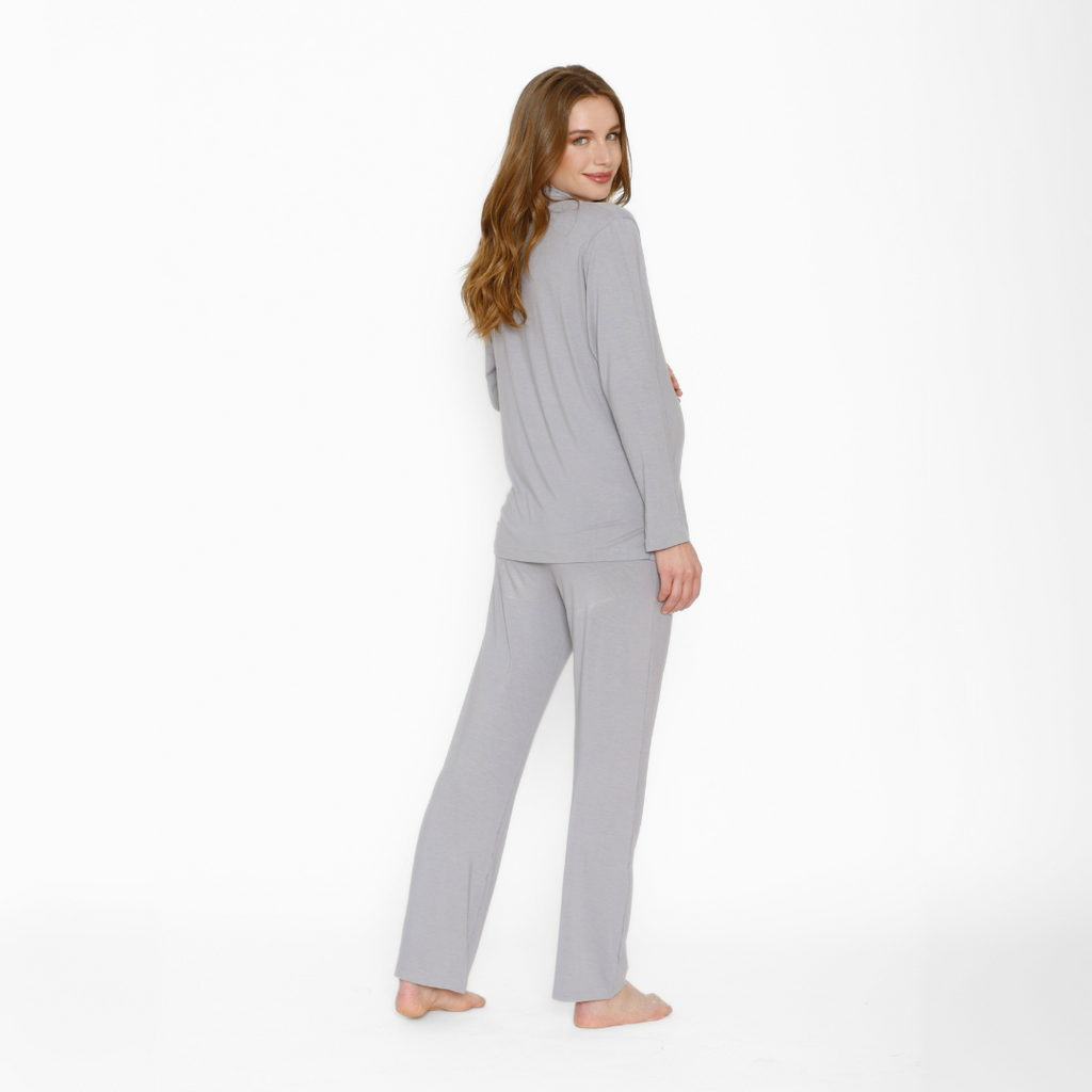 Descubre el equilibrio perfecto entre estilo y comodidad con nuestro Pijama Maternal Camisero en gris. Un básico que no pasa de moda.