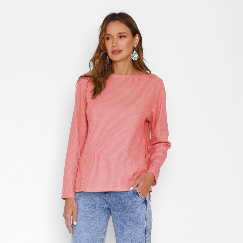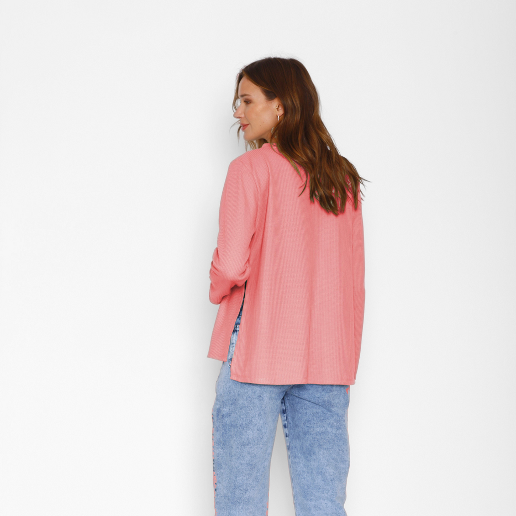 Confeccionado en manga larga y cuello simple, ofrece un calce cómodo y versátil, ideal para el uso diario. De color liso en tela waffle, es una prenda moderna y fácil de combinar con tus tenidas favoritas, aportando un toque elegante y funcional a tu clóset maternal.